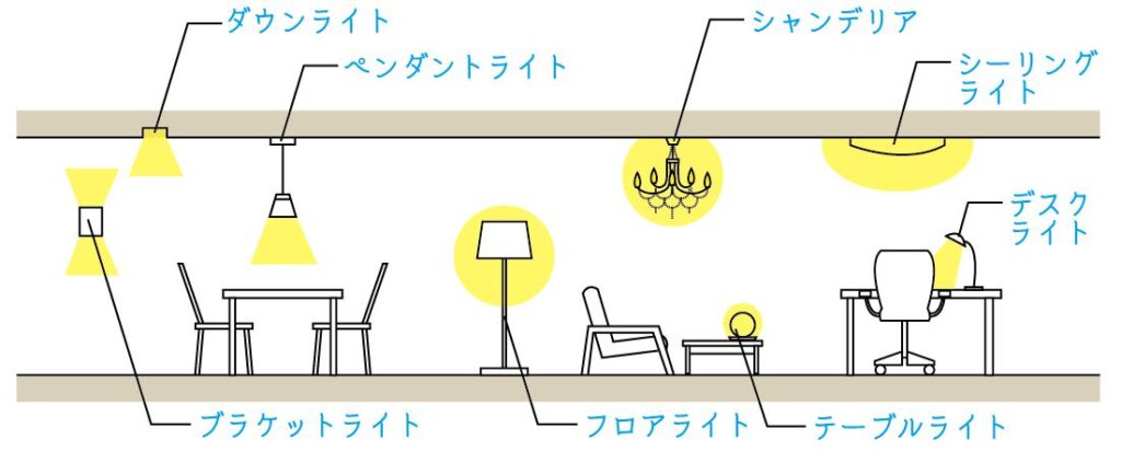 また、照明器具は設置する位置や方法によって、